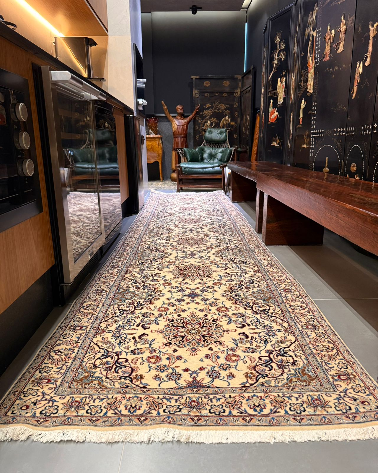 A forma alongada da peça faz dela uma escolha perfeita para corredores, halls de entrada ou espaços de passagem que pedem elegância sem abrir mão da funcionalidade. Além de embelezar, o Nain Extra Fine carrega consigo o prestígio de um legado cultural persa, sendo uma peça de investimento que atravessa gerações.