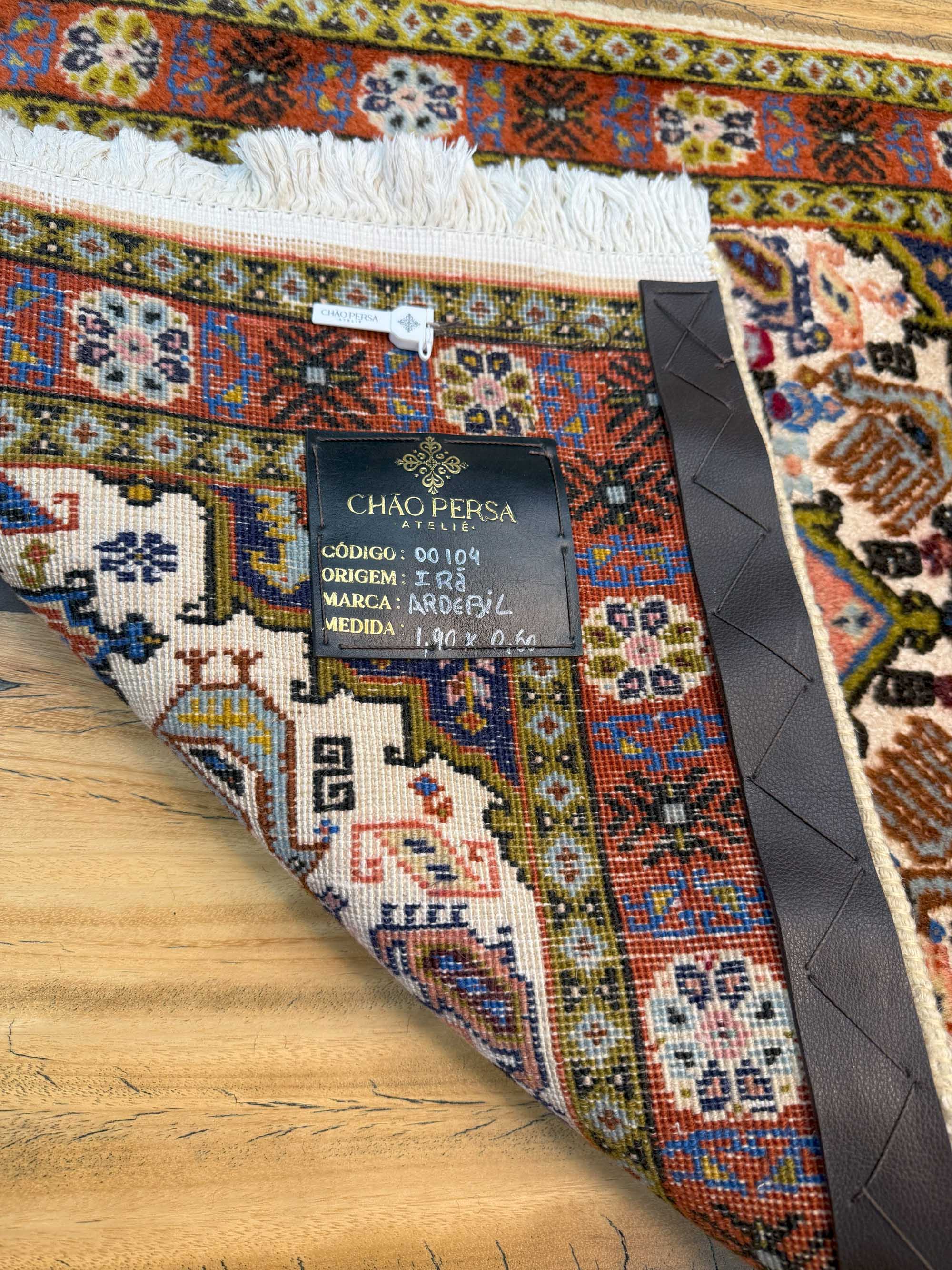 Este refinado tapete Ardebil persa é uma verdadeira expressão da sofisticação iraniana. A cidade de Ardebil, localizada no noroeste do Irã, é célebre por suas peças de grande tradição, com desenhos geométricos e florais de alta precisão.