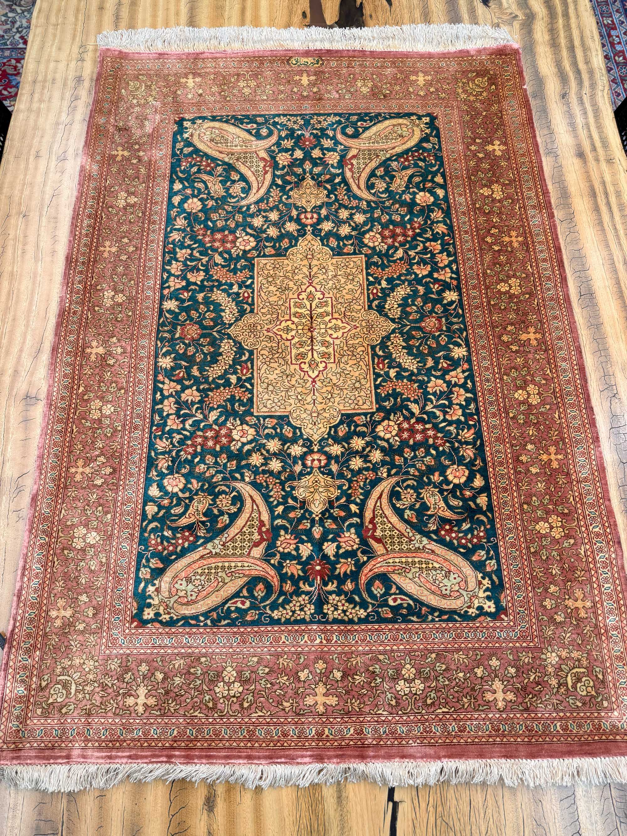 Tapete Persa Ghom Assinado (Seda Extra Fina)