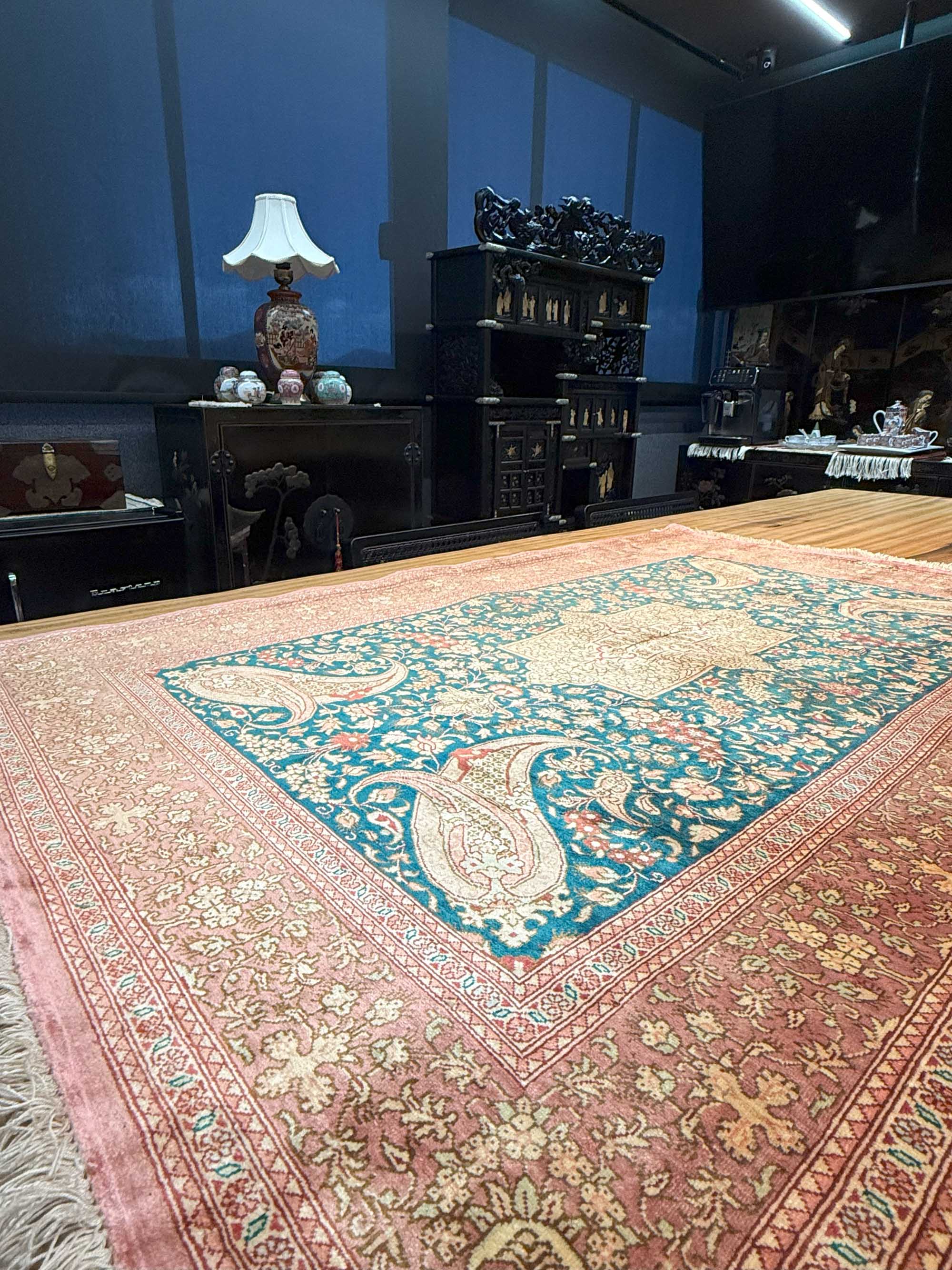 A seda natural dá brilho e luminosidade incomparáveis, ressaltando cada detalhe do desenho e garantindo suavidade ao toque. Trata-se de um exemplar de coleção, destinado a apreciadores e colecionadores de alto nível.