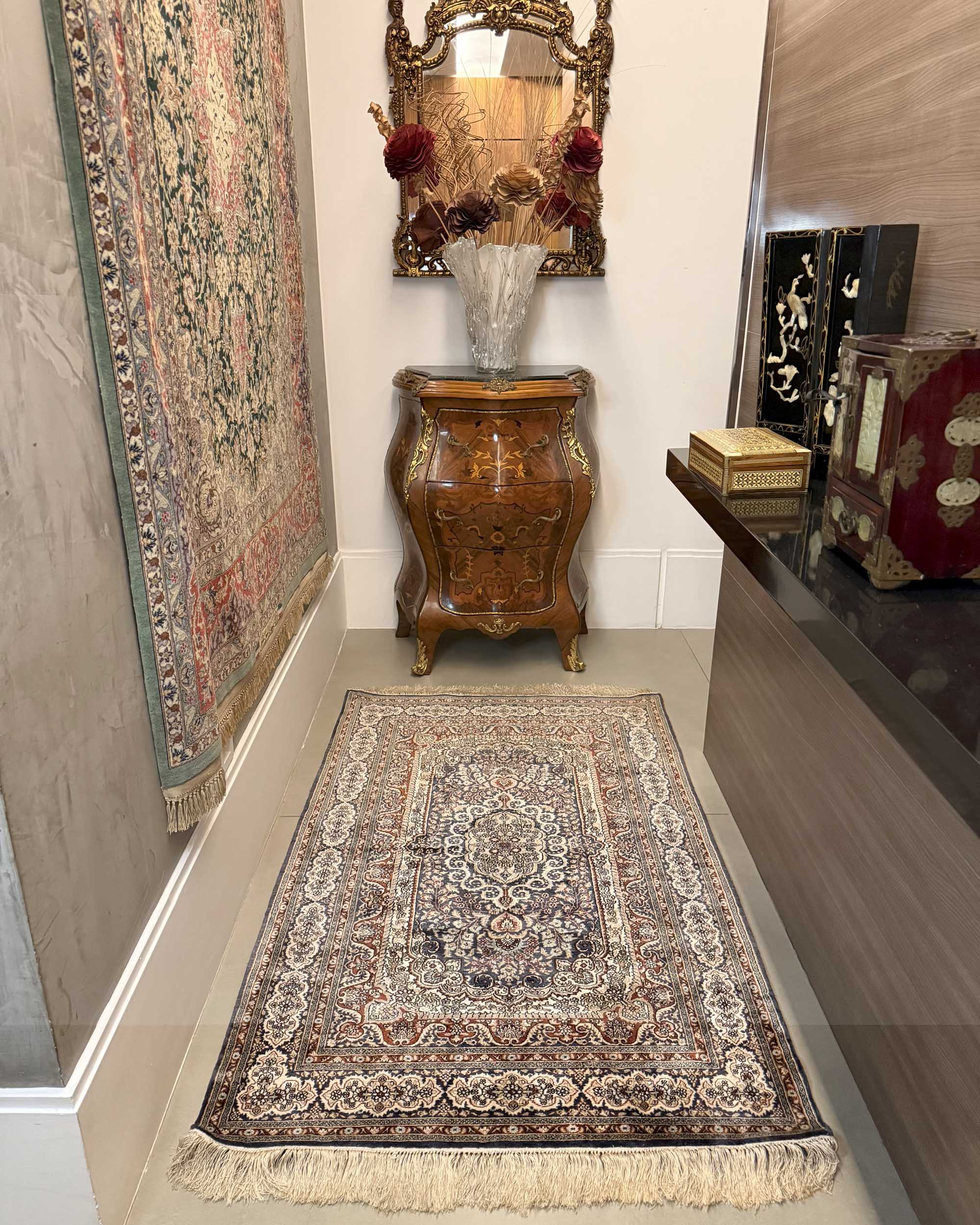Peças de Ghom estão entre as mais procuradas no mercado internacional por sua beleza atemporal e resistência. Este exemplar é capaz de transformar qualquer espaço em um ambiente de distinção, sofisticação e cultura.