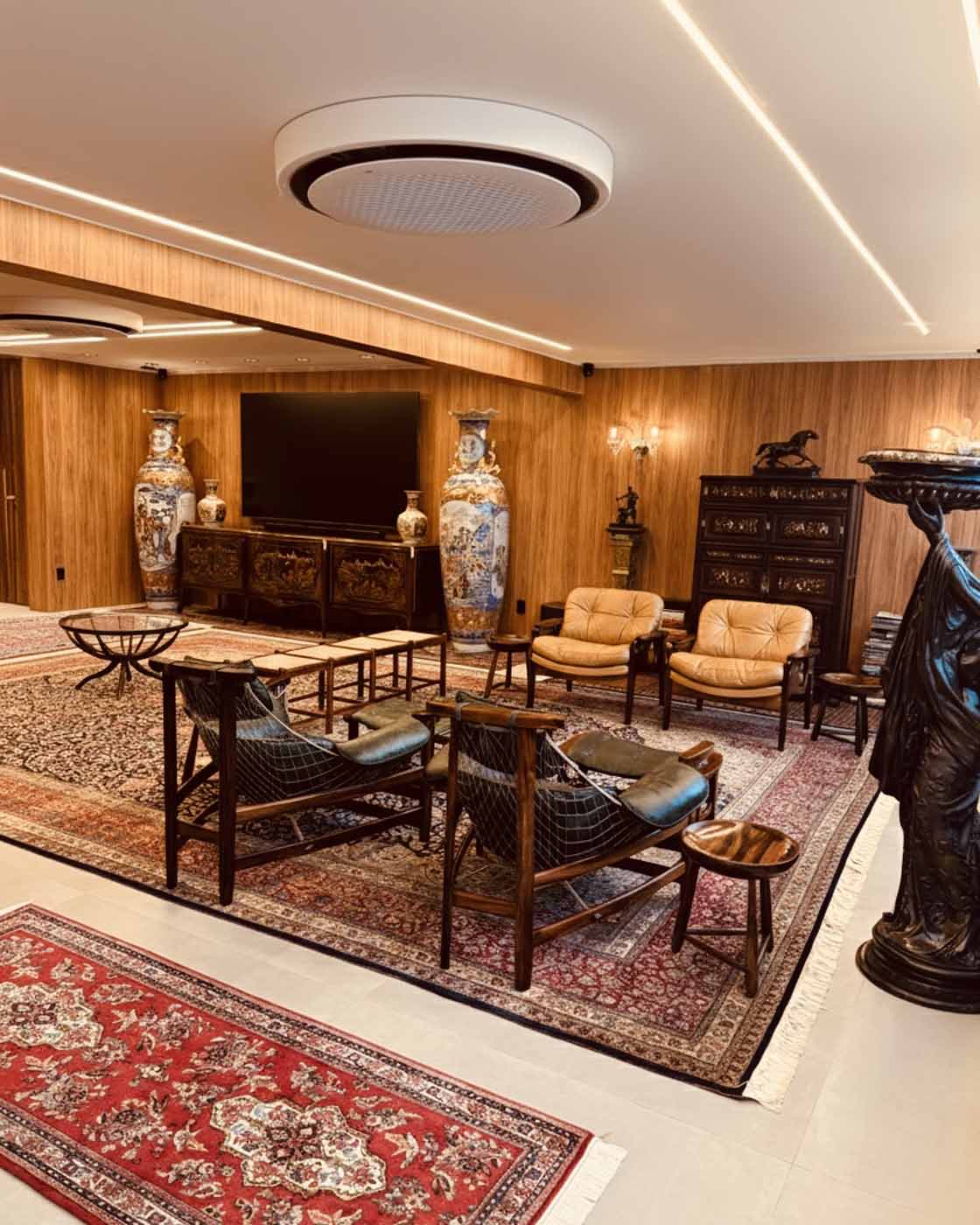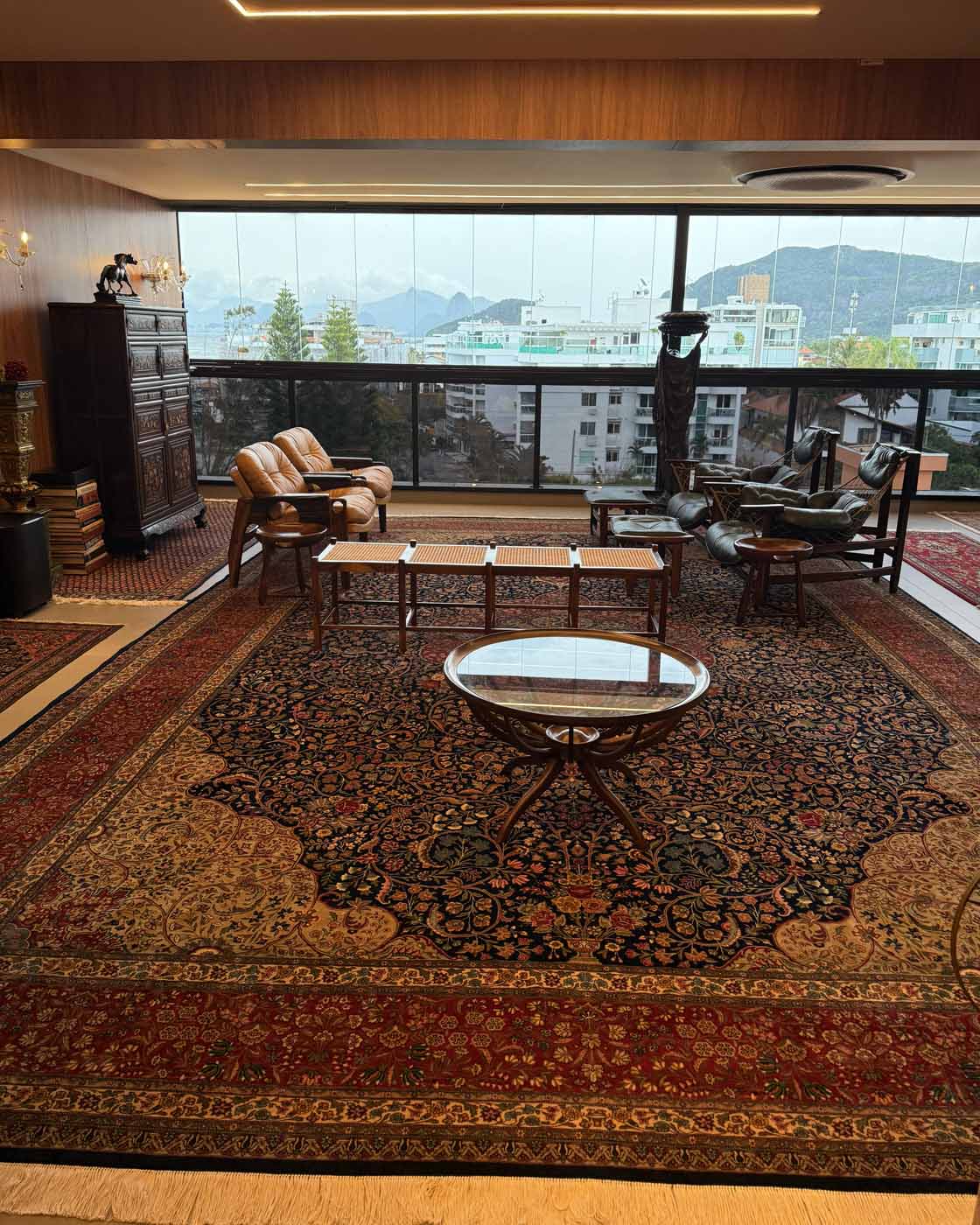 Com impressionantes 6 metros por 4 metros, trata-se de uma metragem raríssima, própria de ambientes palacianos, grandes salões, galerias e projetos arquitetônicos de alto padrão onde o tapete não apenas compõe, mas define o ambiente.