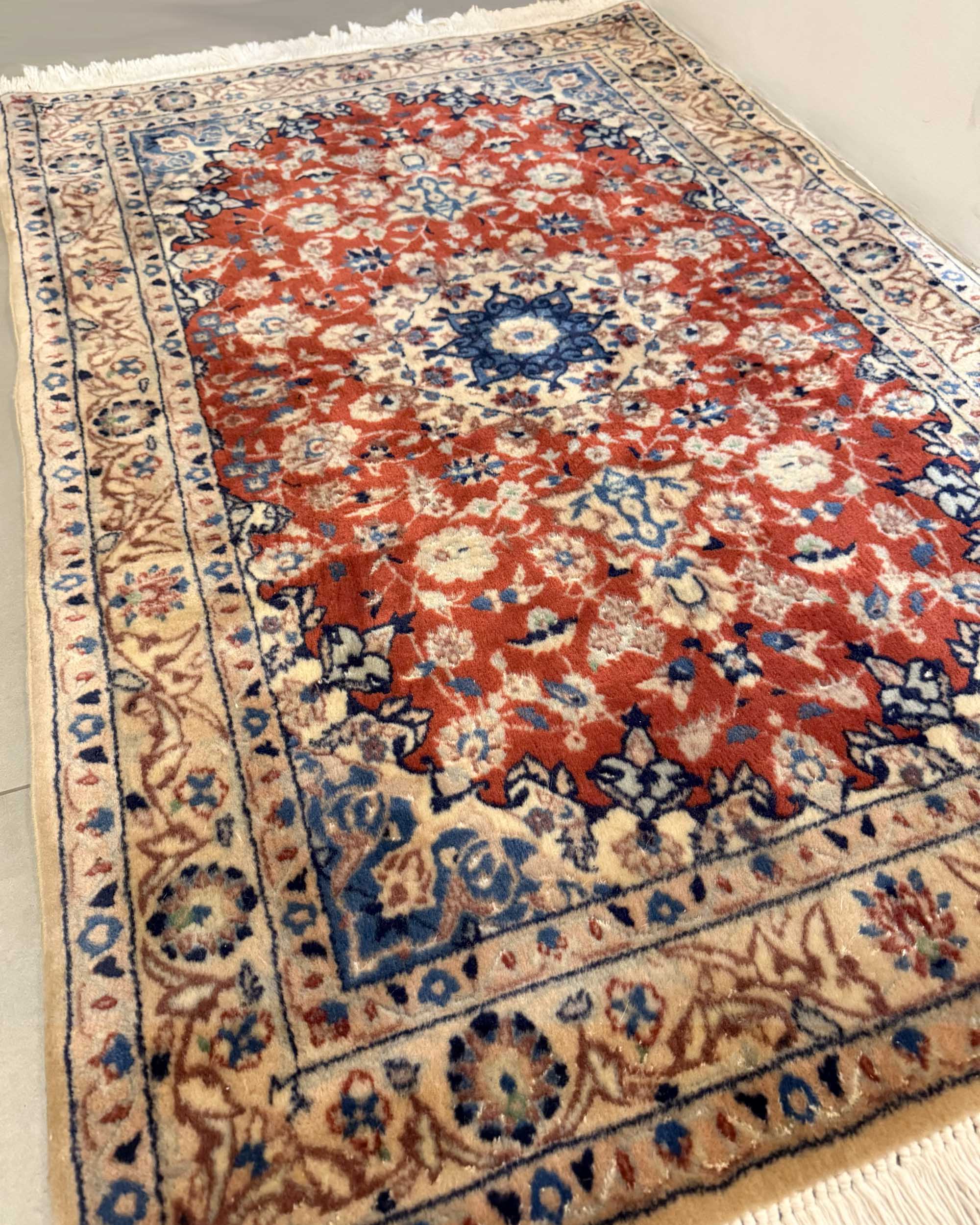 Tecelado à mão por artesãos iranianos, o tapete preserva técnicas transmitidas por gerações, garantindo alta densidade de nós, durabilidade e riqueza de detalhes. É um exemplar que une arte, história e refinamento, perfeito para colecionadores exigentes ou para quem deseja valorizar o ambiente com uma peça autêntica.