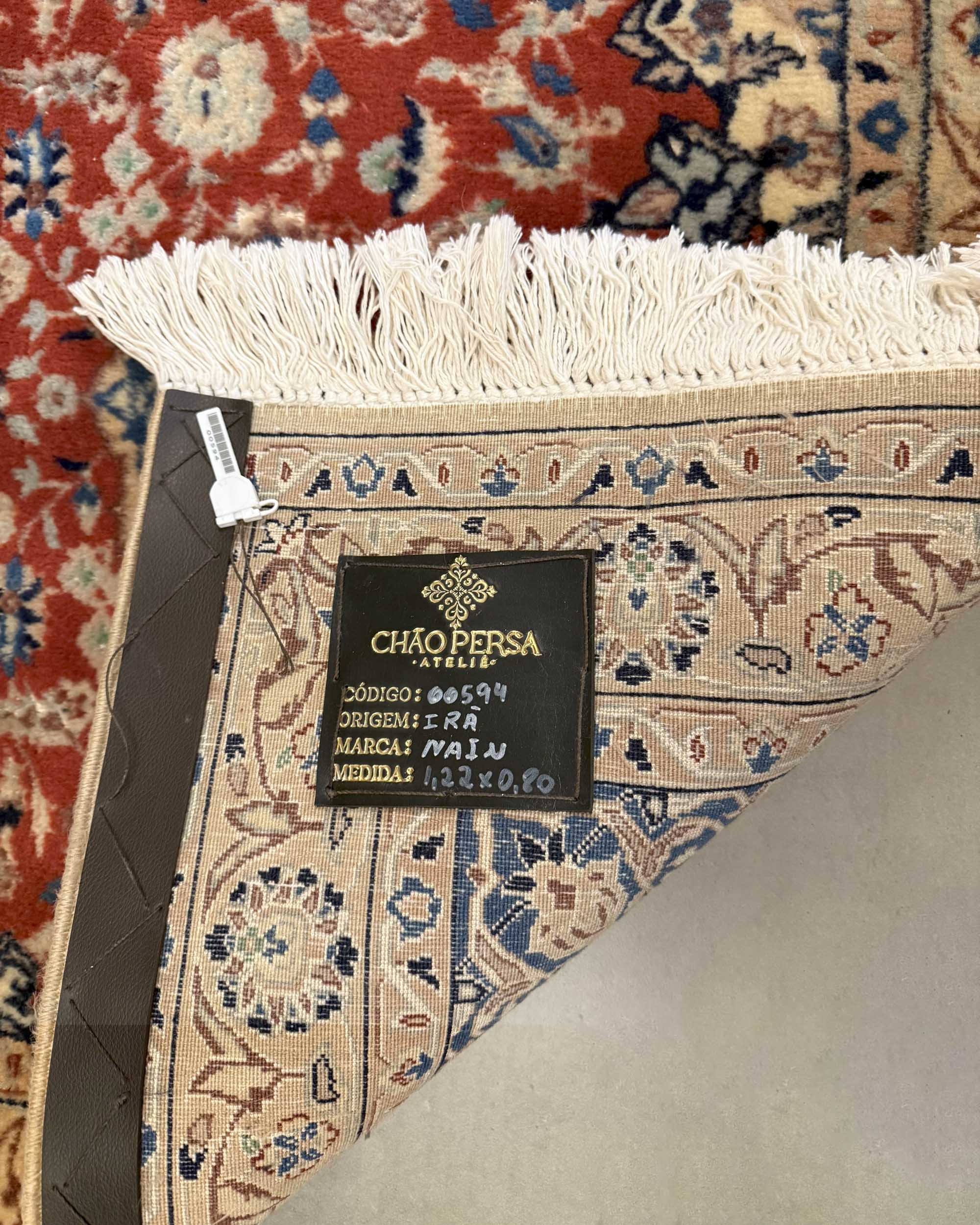 Este refinado tapete persa Nain é um exemplar de rara beleza e sofisticação, produzido na renomada cidade de Nain, reconhecida mundialmente por sua tradição em tapeçaria fina.