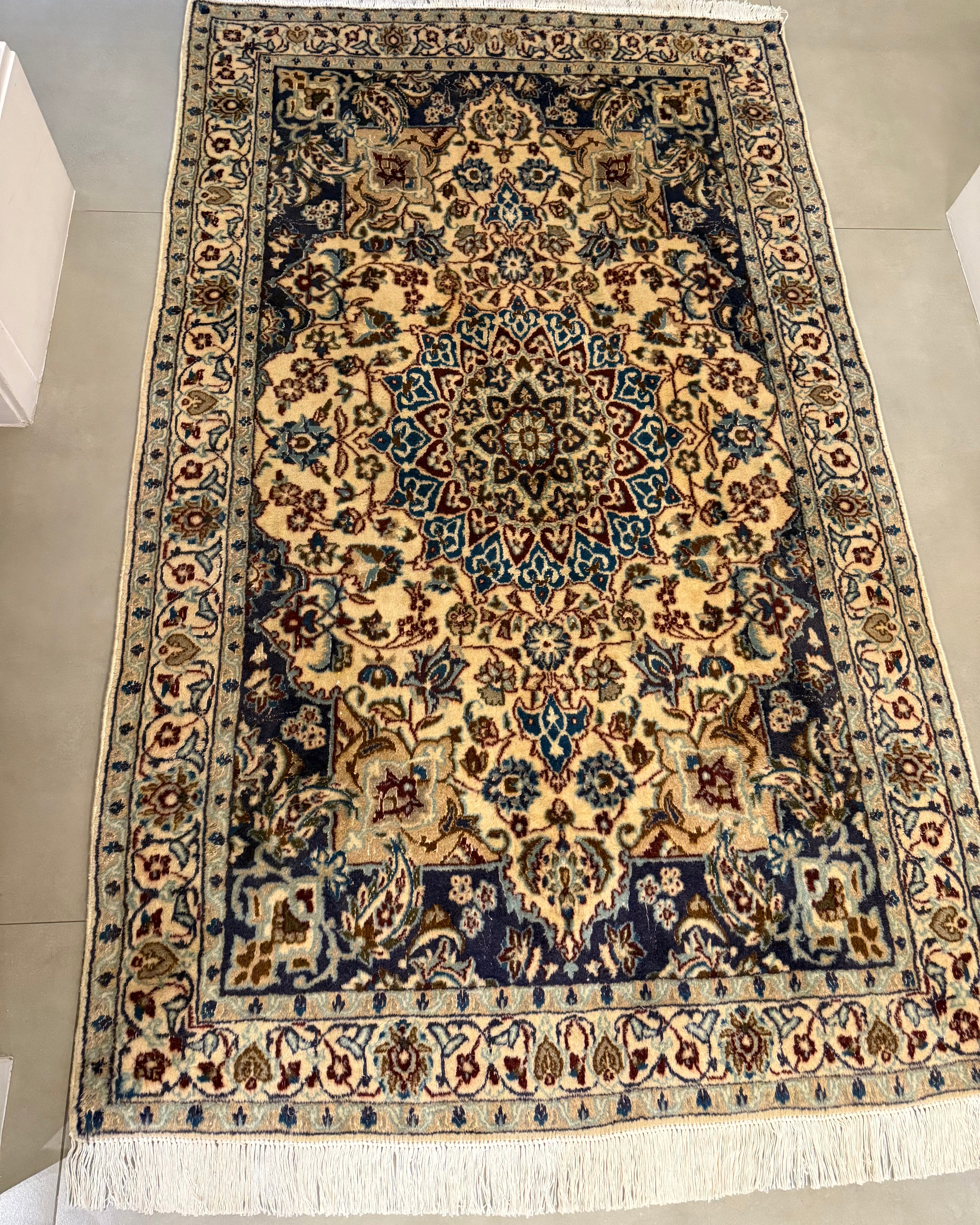 Tapete Persa Nain – Medalhão Central em Lã e Seda